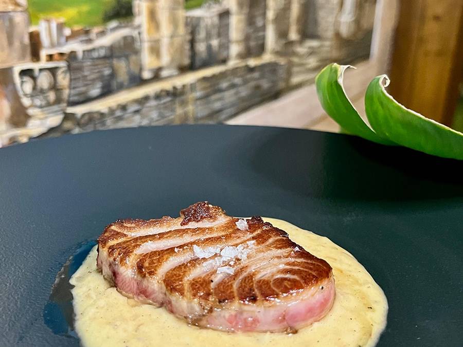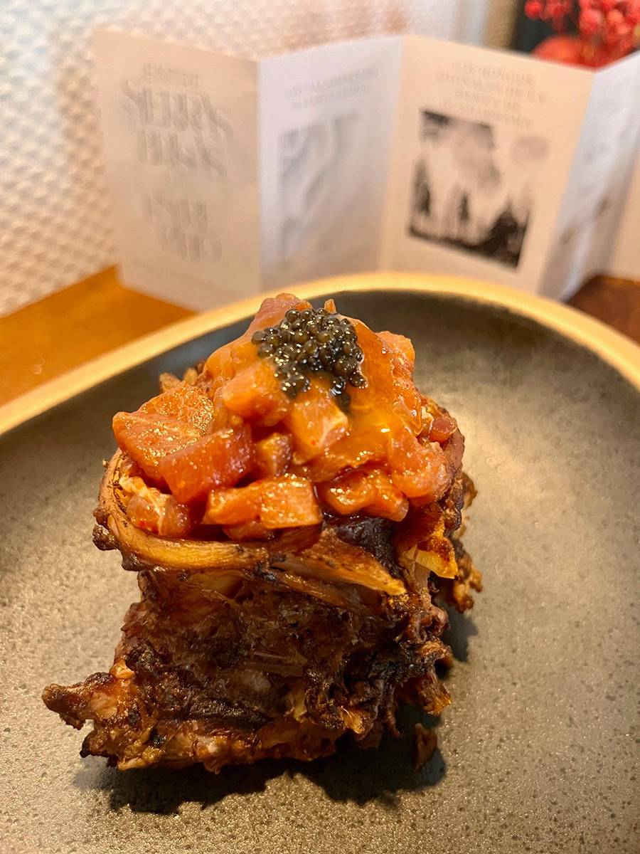 Revive las viejas glorias con el Morrillo de atún rojo de almadraba a la pimienta verde, un clásico reinventado que te transportará a tiempos pasados.